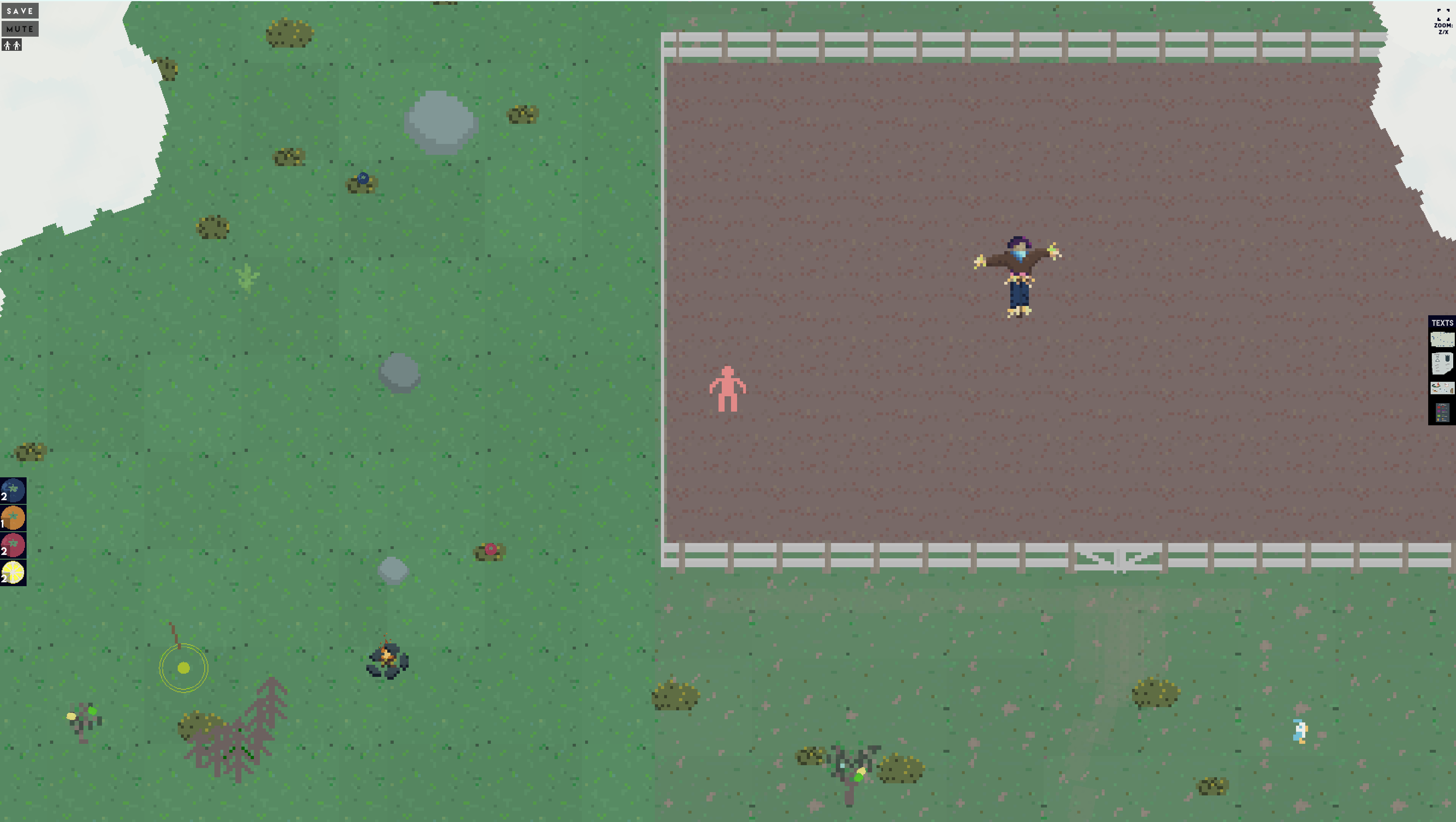 CONTROLS - I tried to make it so that anyone can play it, so you can use WASD or arrow keys or just click to move. Your player will just move towards wherever you click, so avoid routing them over pits or fire. The tools & texts panels appear on the right and left - click to use a tool or view/hide a text. You can click and drag the texts around to see more than one at once. Z and X zoom the camera in and out.